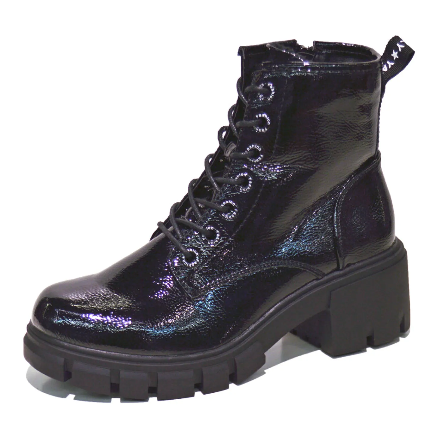 Trendikäs ja monikäyttöinen nilkkuri tukevalla korolla. Pinta helppohoitoista keinonahkaa. Vetoketju helpottaa jalkaan laittoa ja nauhat takaavat istuvuuden. Ohut karvavuori.