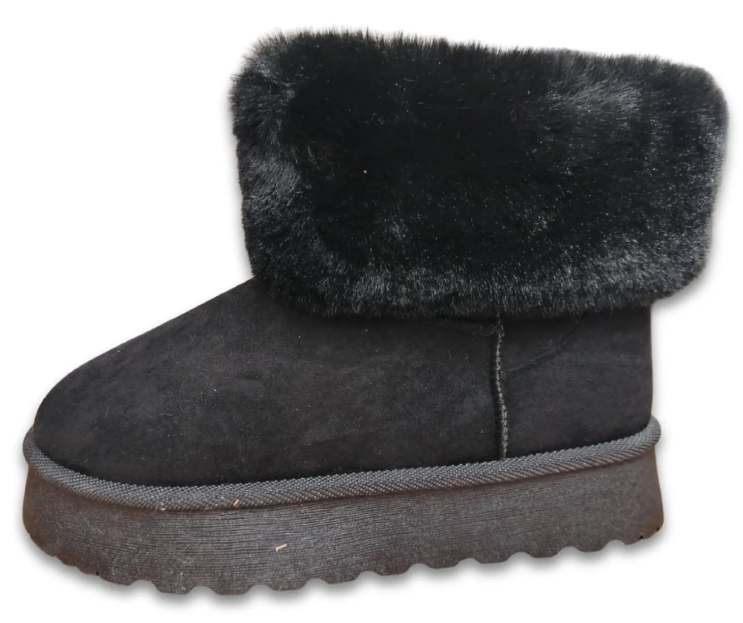 Trendikäs ja monikäyttöinen nilkkuri tukevalla pohjalla. Pinta helppohoitoista tekstiiliä, varressa ihanan pehmeä tekoturkisreunus. Lämmin karvavuori. Helppo ja nopea sujauttaa jalkaan. Väri kokonaan musta.