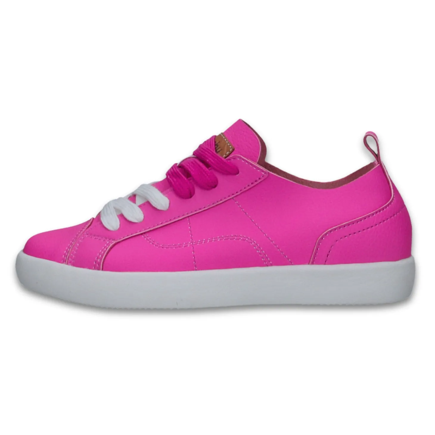 Monikäyttöinen nahkatennari nauhakiinnityksellä. Kenkien mukana saat kahdet eriväriset nauhat, joilla kengän ilmettä saa helposti muutettua. Pintamateriaali on laadukasta nahkaa, vuoreton malli. Todella kevyet jalassa. Väri fuksian pinkki.