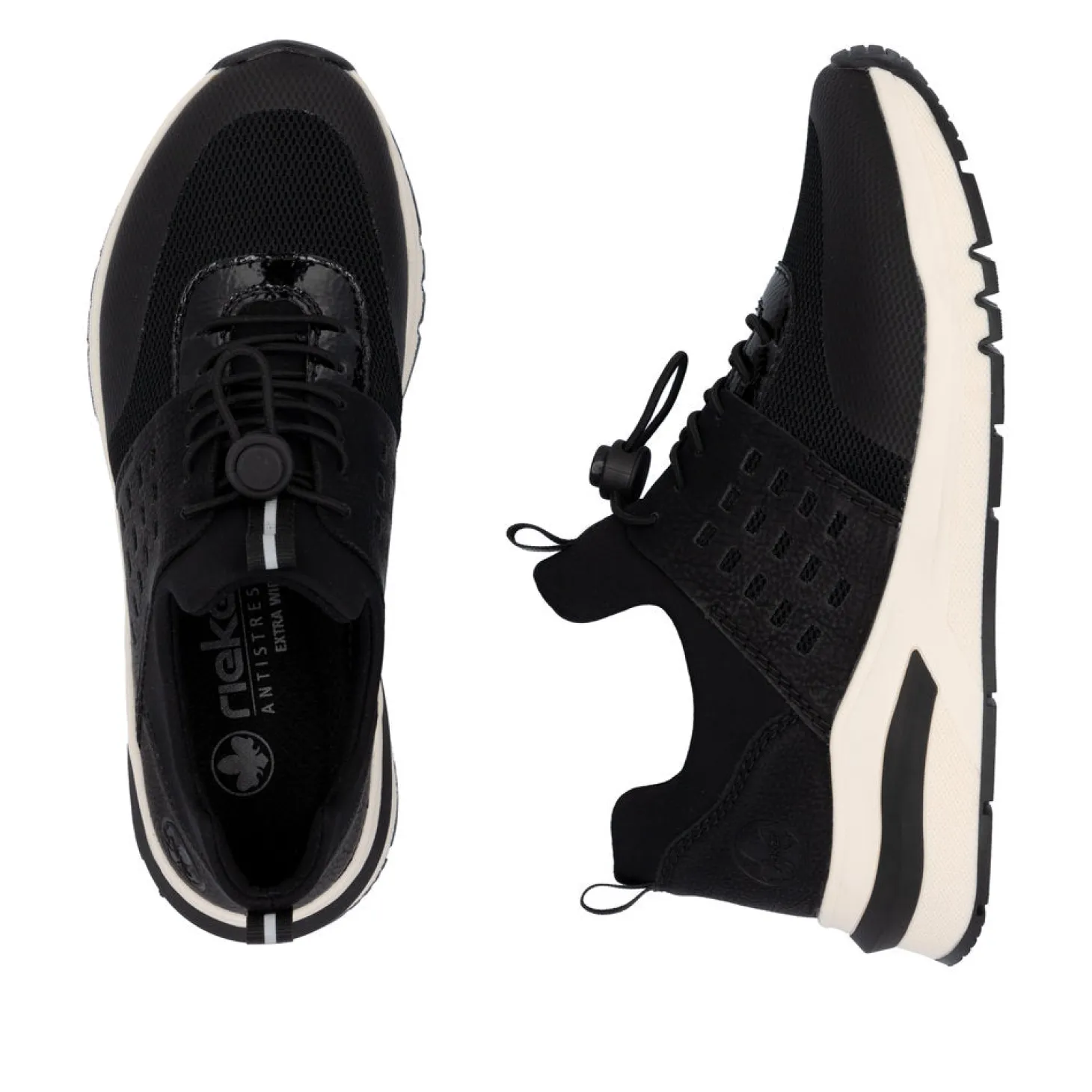 Sporttinen ja monikäyttöinen kävelykenkämalli. Pintamateriaali helppohoitoista keinonahkaa, pehmustettu sisäpohja, hyvä iskunvaimennus ja tukeva pohja. Reilu H-lesti. Kätevät pikanauhat.