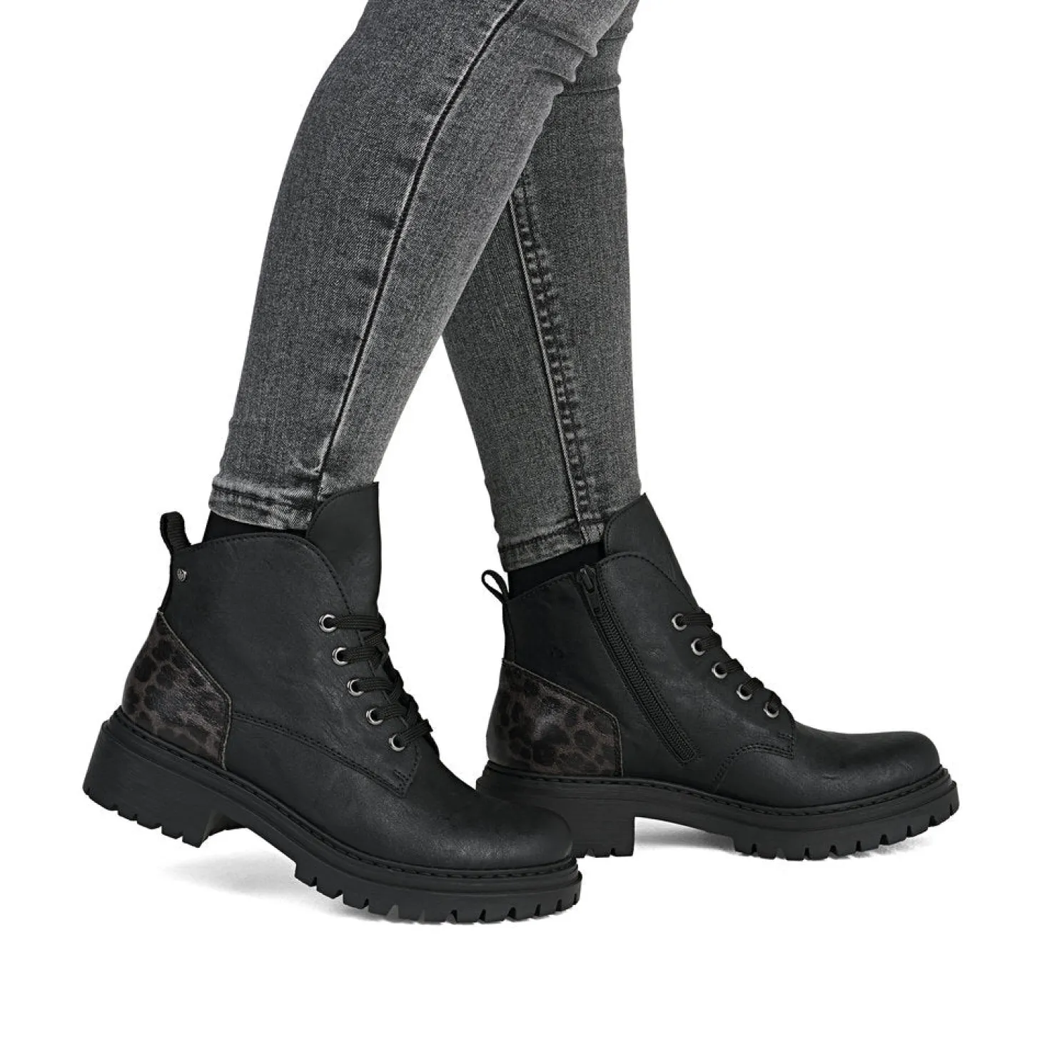 Muodikas ja monikäyttöinen nilkkurimalli tukevalla pohjalla. Vetoketju helpottaa jalkaan laittoa ja nauhat takaavat istuvuuden. Ohut karvavuori, mukava sisäpohja, F-lesti, pinta helppohoitoista keinonahkaa. Kannassa trendikäs, hillitty leopardikuosinen yksityiskohta.