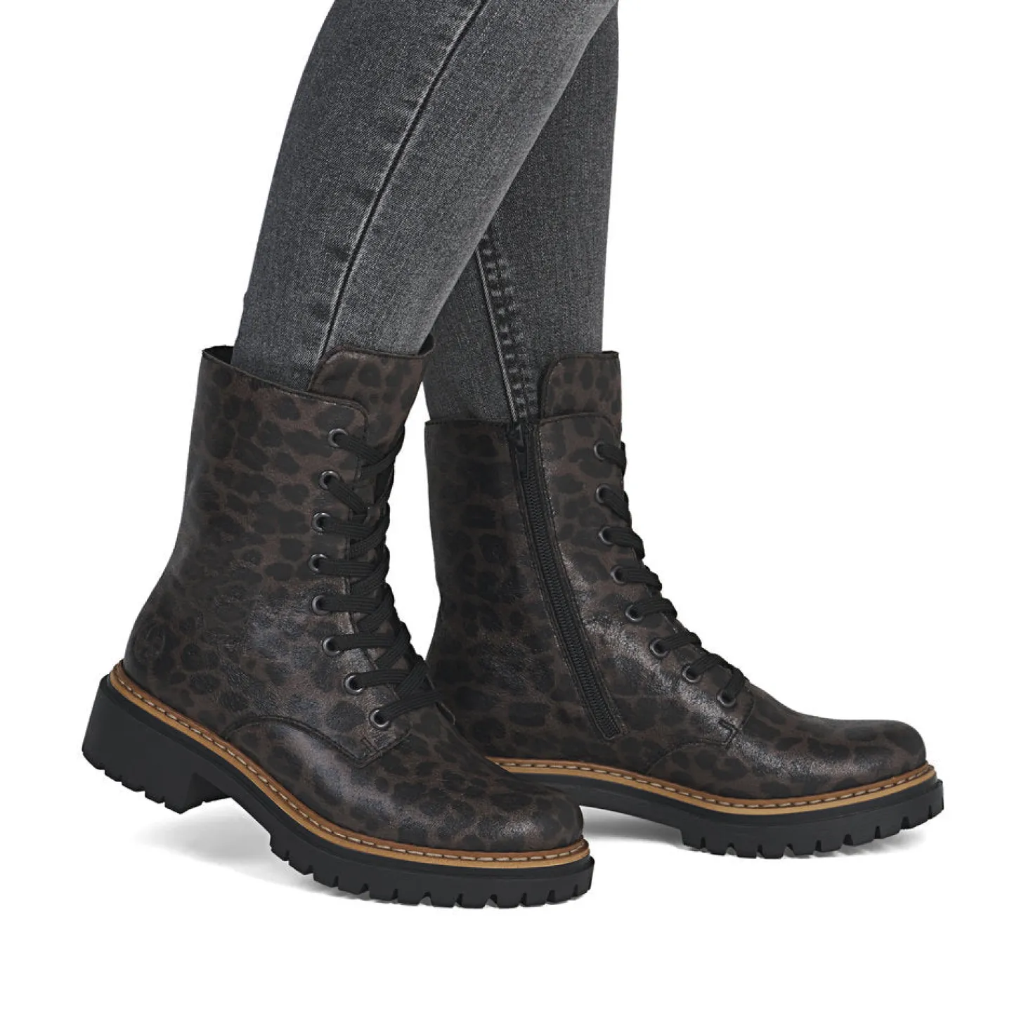 Muodikas ja monikäyttöinen nilkkurimalli tukevalla pohjalla. Vetoketju helpottaa jalkaan laittoa ja nauhat takaavat istuvuuden. Lämmin karvavuori, mukava sisäpohja, F-lesti, pinta helppohoitoista keinonahkaa. Trendikäs leopardiprintti.