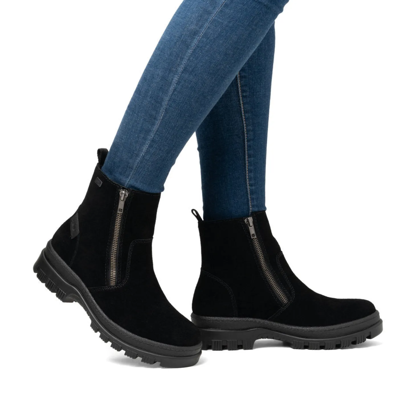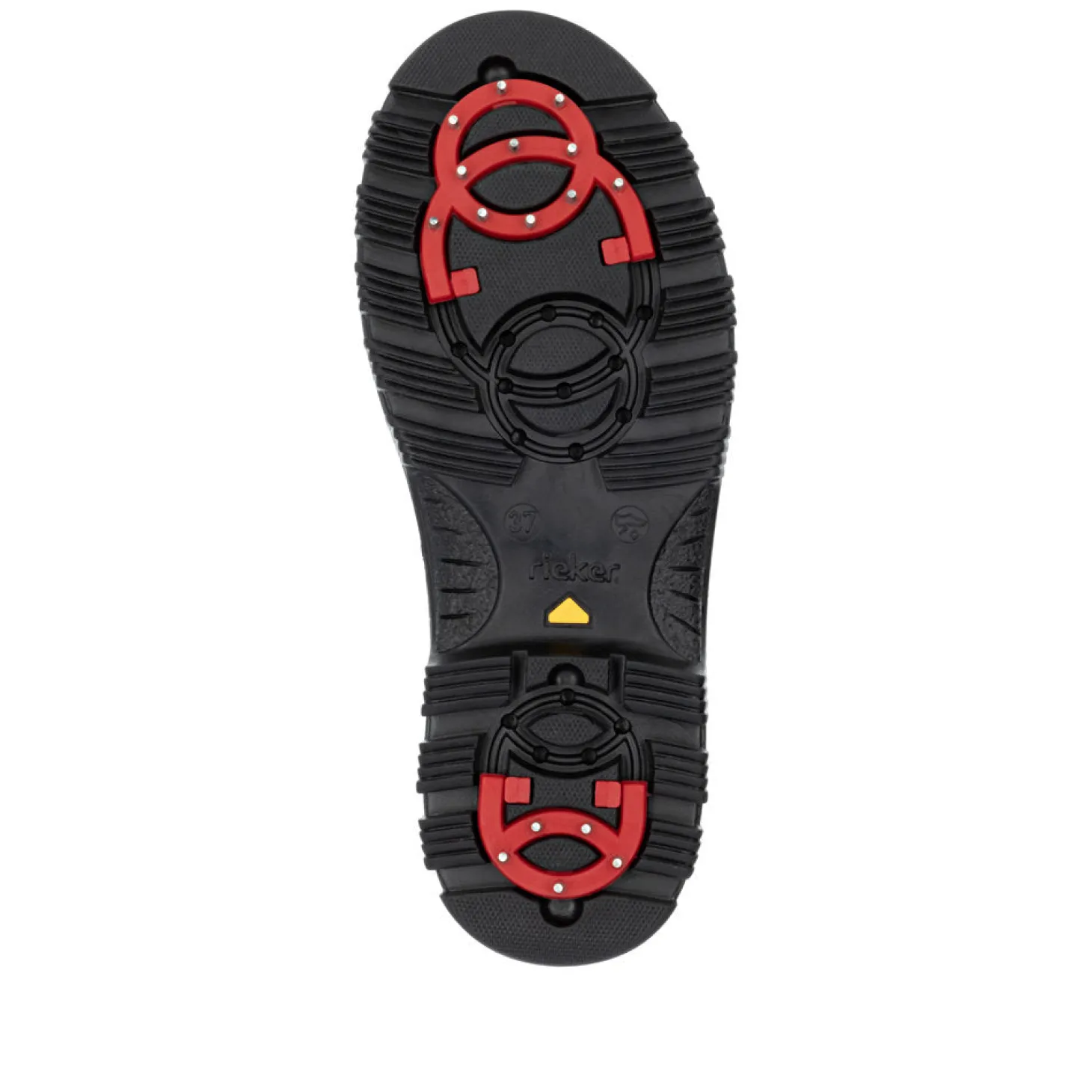 Monikäyttöinen nilkkurimalli vettä hylkivällä RiekerTEX-ominaisuudella ja patentoiduilla kääntönastoilla. Pinta laadukasta mokkanahkaa, tukeva pohja, F½-lesti ja lämmin vuori. Vetoketjut helpottavat jalkaan laittoa.