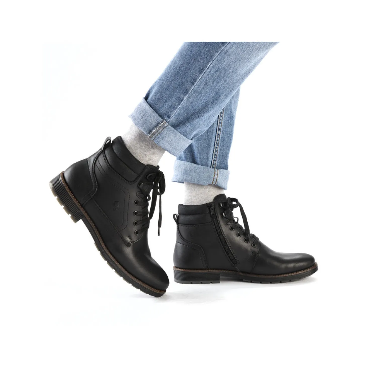 Monikäyttöinen nilkkurimalli vettä hylkivällä RiekerTEX-ominaisuudella. Pinta laadukasta nahkaa, reilu G½-lesti, lämmin villavuori ja tukeva pohja. Vetoketju helpottaa jalkaan laittoa ja nauhat takaavat istuvuuden.