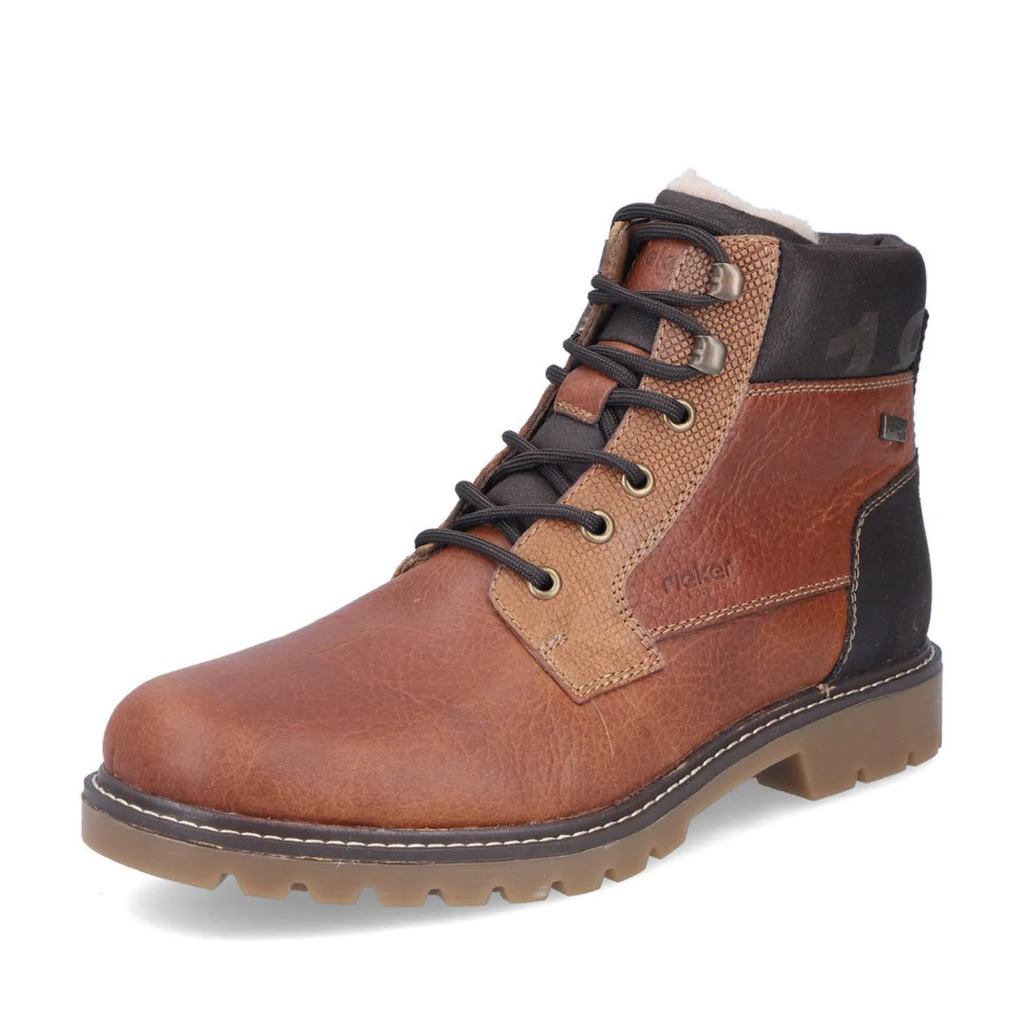 Monikäyttöinen nilkkurimalli vettä hylkivällä RiekerTEX-ominaisuudella. Pinta laadukasta nahkaa, reilu G½-lesti, lämmin villavuori ja tukeva pohja. Vetoketju helpottaa jalkaan laittoa ja nauhat takaavat istuvuuden.