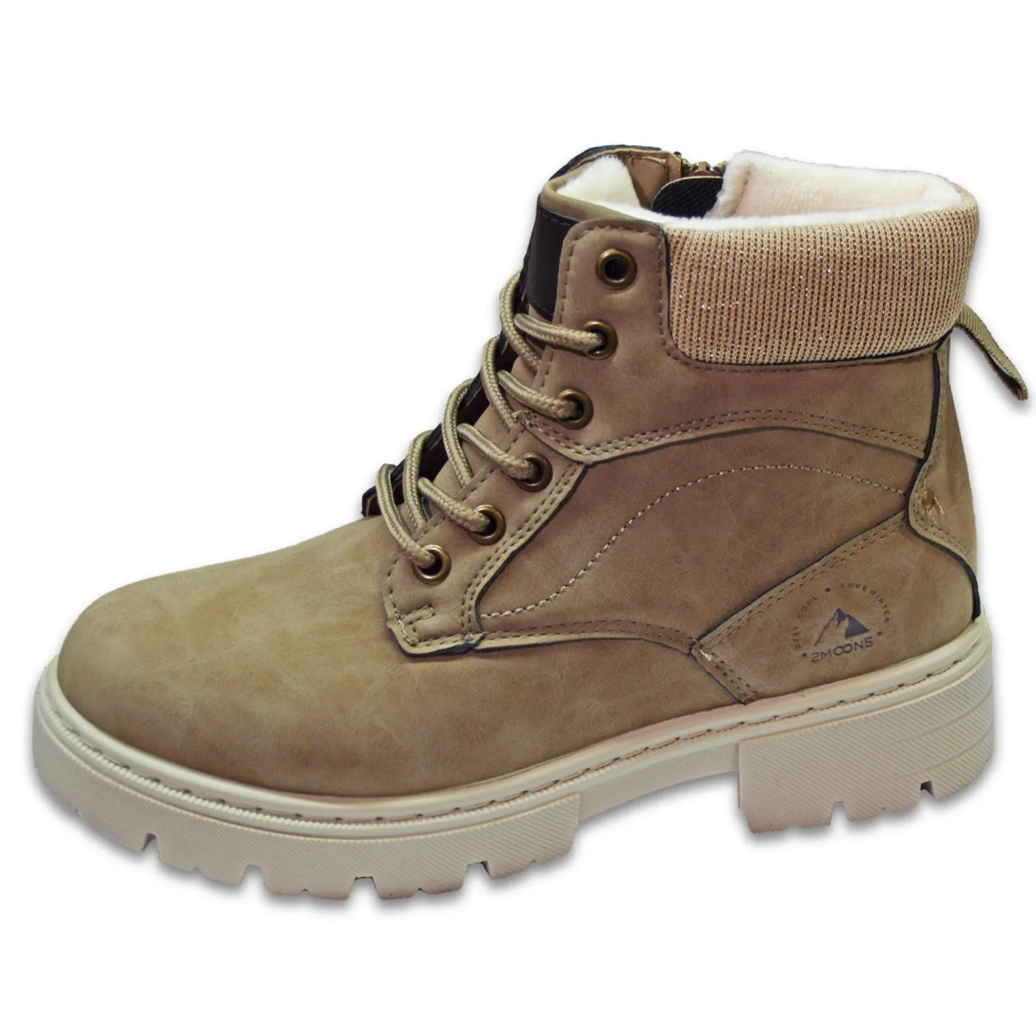 Trendikäs ja monikäyttöinen nilkkurimalli. Pinta helppohoitoista, likaa ja kosteutta hylkivää keinonahkaa. Vetoketju helpottaa jalkaan laittoa ja nauhat takaavat istuvuuden. Ohut karvavuori ja tukeva pohja kävellä. Varren pehmusteresorissa mukana kaunista kimallelankaa.