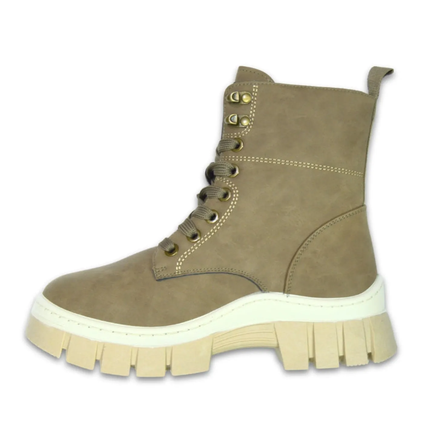Trendikäs ja monikäyttöinen nilkkurimalli. Pinta helppohoitoista, likaa ja kosteutta hylkivää keinonahkaa. Vetoketju helpottaa jalkaan laittoa ja nauhat takaavat istuvuuden. Pehmeä fleecevuori ja tukeva pohja kävellä. Väri harmaan ruskea.