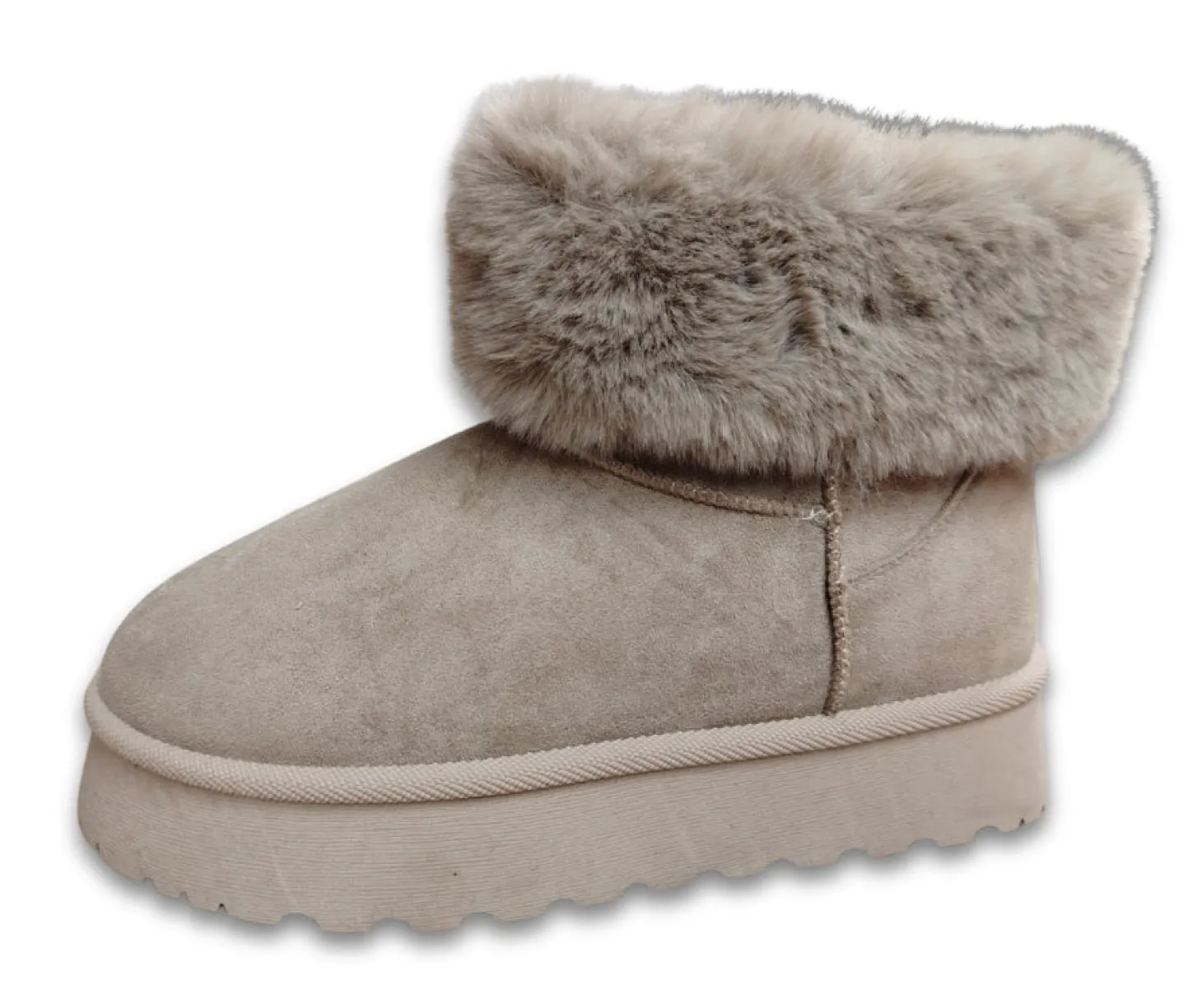 Trendikäs ja monikäyttöinen nilkkuri tukevalla pohjalla. Pinta helppohoitoista tekstiiliä, varressa ihanan pehmeä tekoturkisreunus. Lämmin karvavuori. Helppo ja nopea sujauttaa jalkaan. Väri vaalea beige.