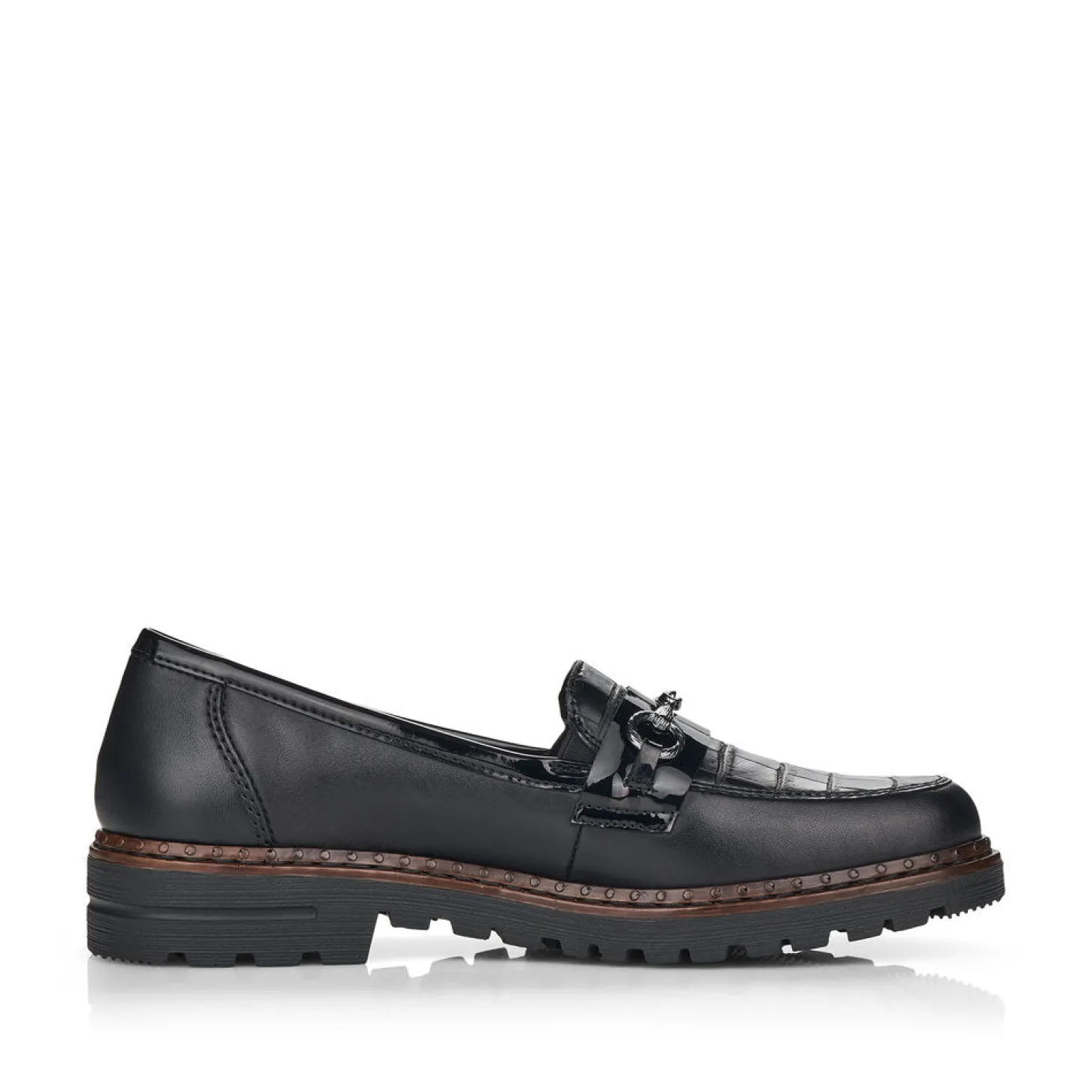 Tyylikäs ja ajaton loafer -mallinen kävelykenkä. Pinta laadukasta nahkaa ja keinonahkaa, F-lesti, tukeva, karkeasti kuvioitu ulkopohja. Tyylikkäät yksityiskohdat.