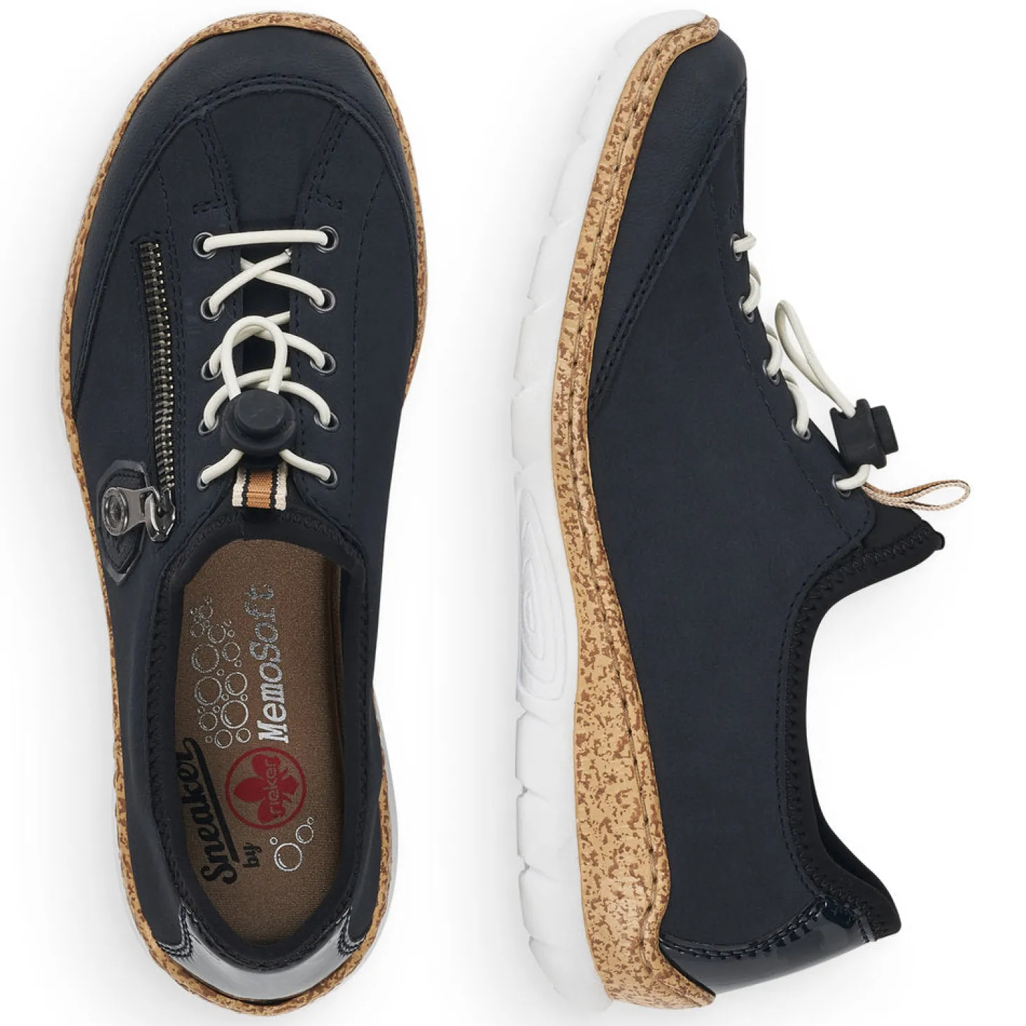 Sporttinen kävelykenkä monipuoliseen käyttöön. Tukeva pohja, lesti F½, jalan mukaan muotoutuva Memosoft -sisäpohja, pinta helppohoitoista keinonahkaa ja tekstiiliä. Helppokäyttöiset joustonauhat. Sivussa koristevetoketju. Väri tumman sininen.