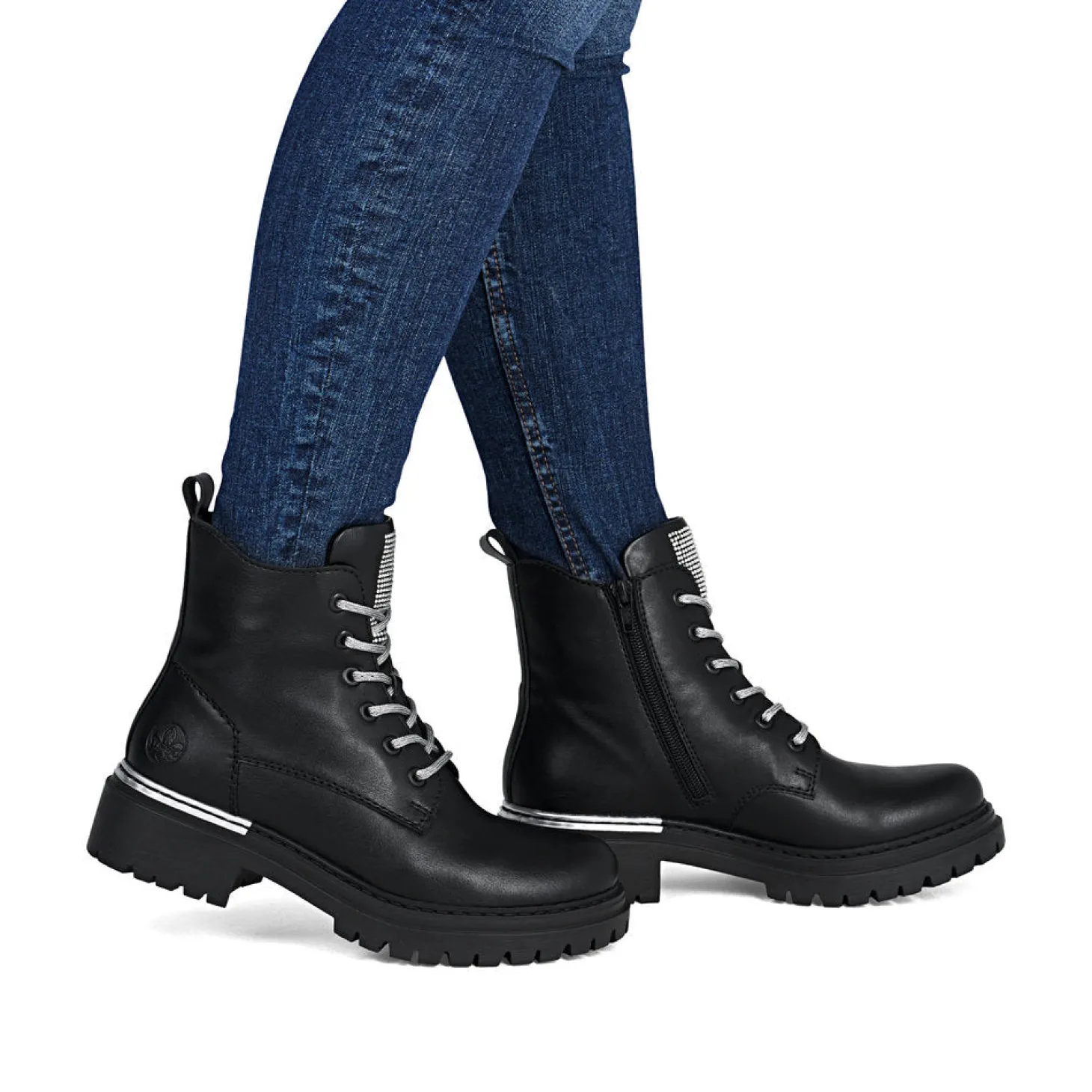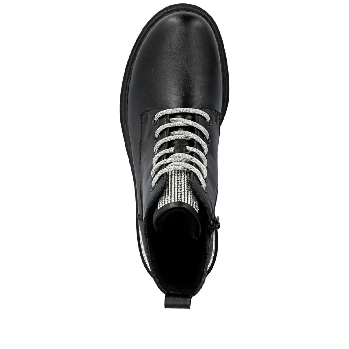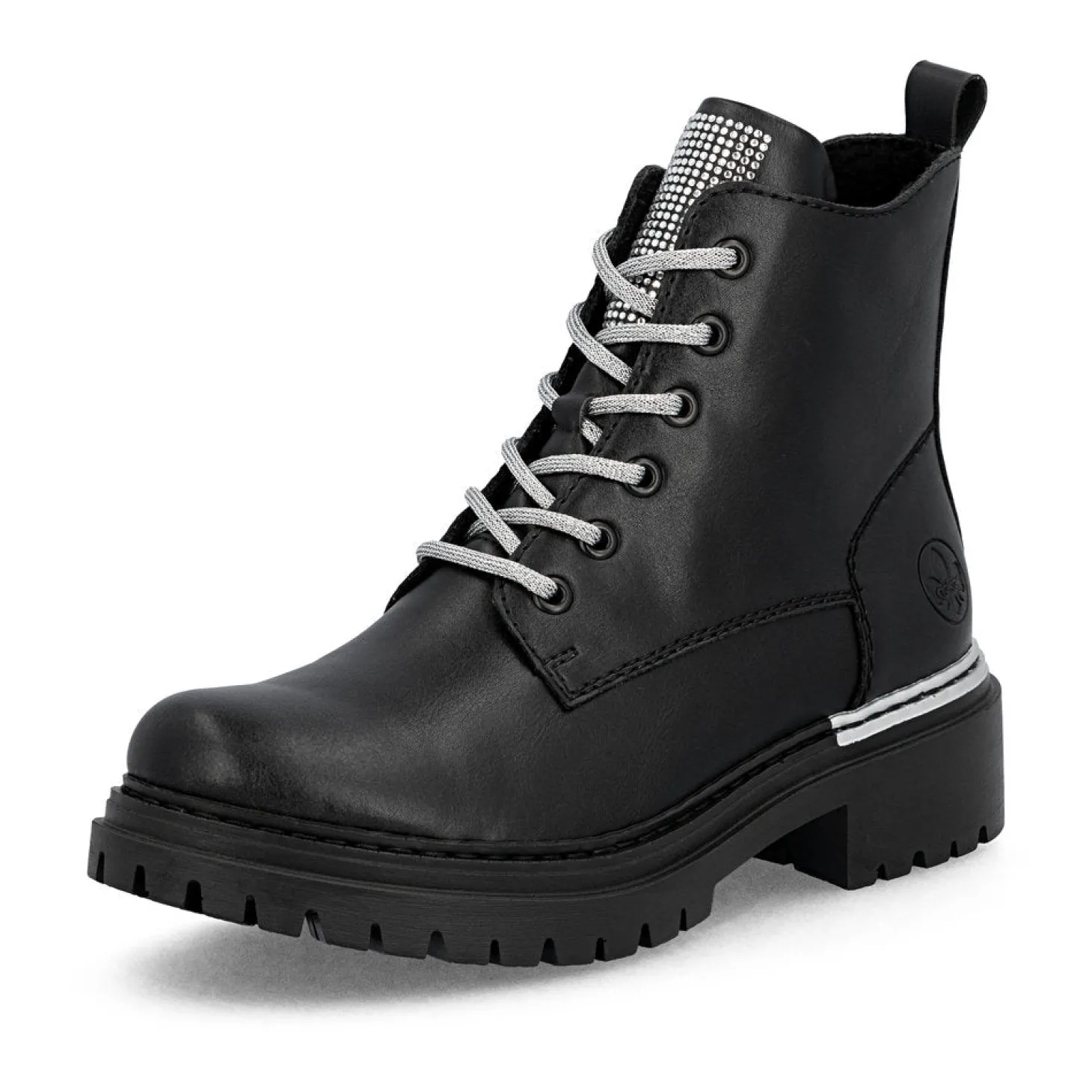 Muodikas ja monikäyttöinen nilkkurimalli tukevalla pohjalla. Vetoketju helpottaa jalkaan laittoa ja nauhat takaavat istuvuuden. Ohut karvavuori, mukava sisäpohja, F-lesti, pinta helppohoitoista keinonahkaa. Huipputrendikkäitä hopean värisiä yksityiskohtia sekä kauniisti kimaltavia strasseja.