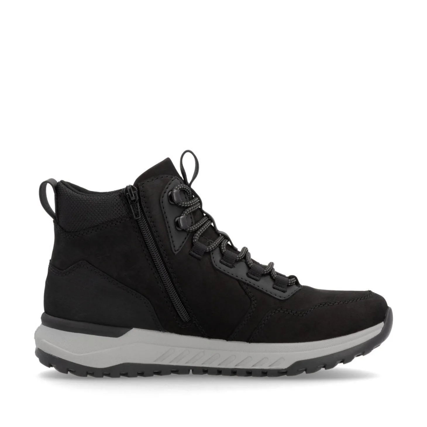 Monikäyttöinen nilkkurimalli vettä hylkivällä TEX-ominaisuudella. Pinta laadukasta nahkaa, reilu G½-lesti, kevyt tekstiilivuori, pehmeä pohjallinen ja tukeva pohja. Vetoketju helpottaa jalkaan laittoa ja nauhat takaavat istuvuuden.