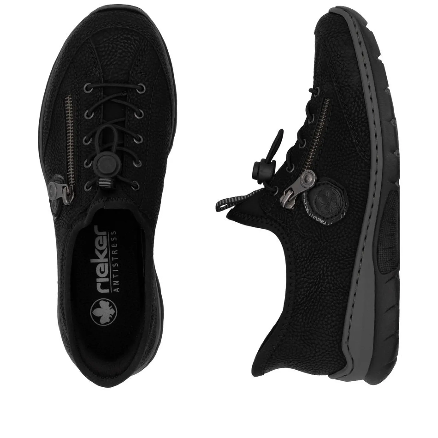Helposti jalkaan sujautettava Ready2Go-malli. Enää ei tarvitse kumarrella, vaan kengän erikoismuotoiltu kantaosa saa jalan sujahtamaan paikalleen vaivatta, Pintamateriaali helppohoitoista keinonahkaa, pehmustettu sisäpohja, hyvä iskunvaimennus ja tukeva pohja. Lesti F½.