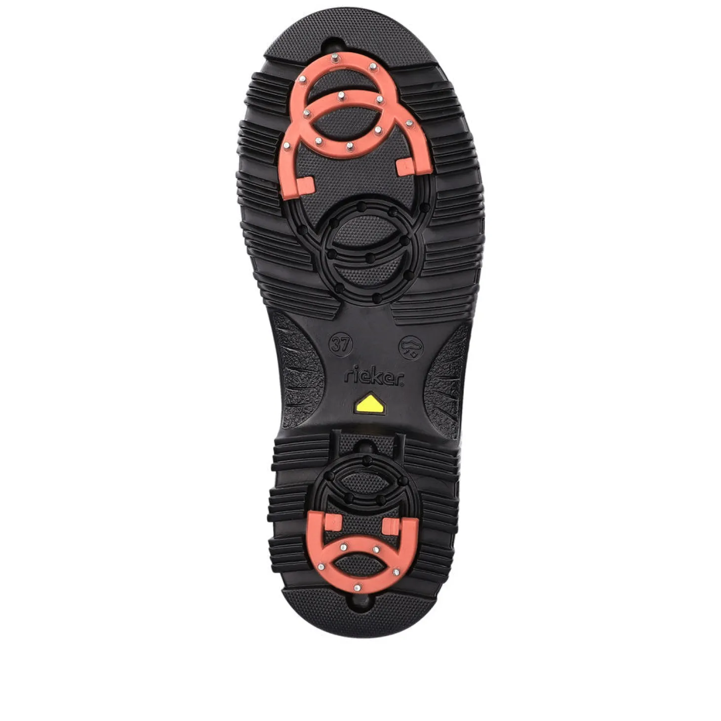 Monikäyttöinen nilkkurimalli vettä hylkivällä RiekerTEX-ominaisuudella ja patentoiduilla kääntönastoilla. Pinta laadukasta mokkanahkaa, tukeva pohja, F½-lesti ja lämmin vuori. Vetoketju helpottaa jalkaan laittoa.