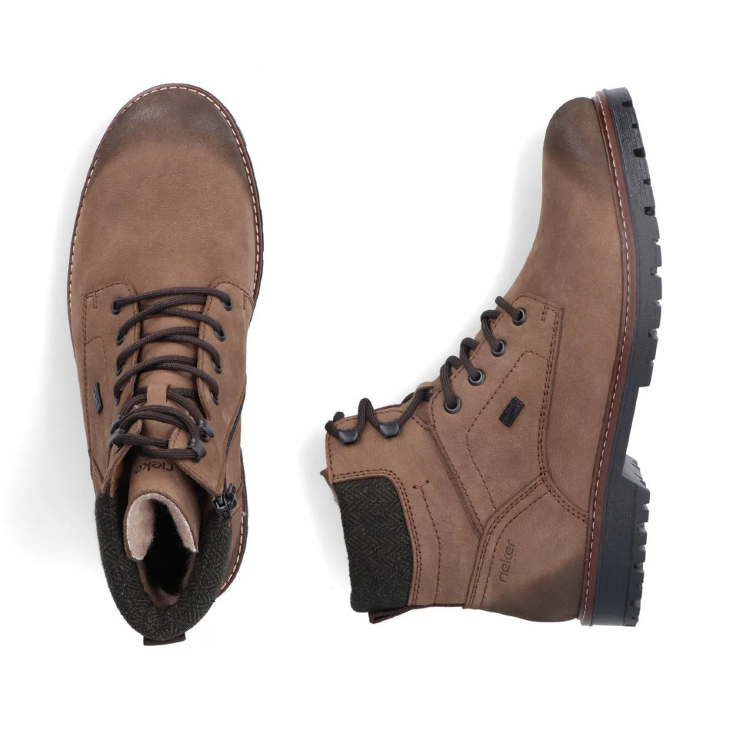 Monikäyttöinen nilkkurimalli vettä hylkivällä RiekerTEX-ominaisuudella. Pinta laadukasta nahkaa, reilu G½-lesti, lämmin villavuori, pehmeä pohjallinen ja tukeva pohja. Vetoketju helpottaa jalkaan laittoa ja nauhat takaavat istuvuuden.