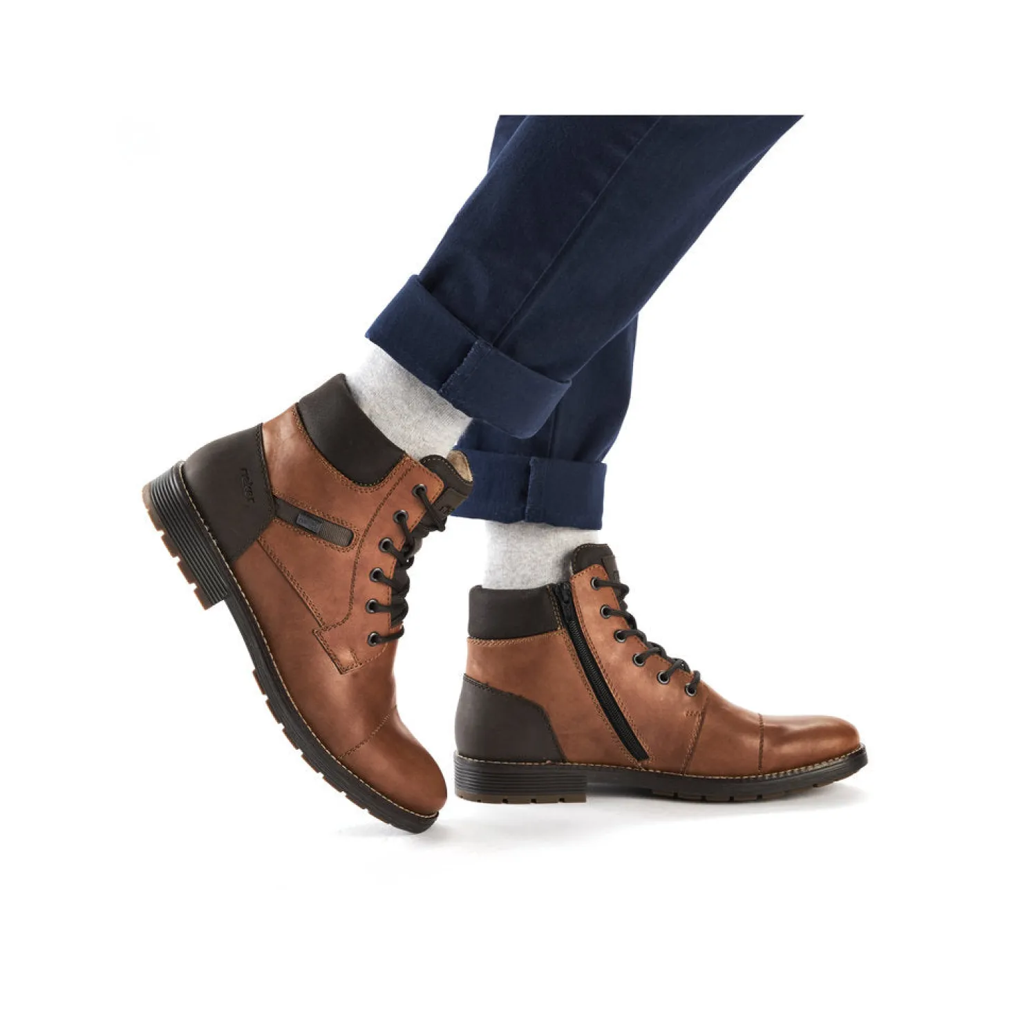 Monikäyttöinen nilkkurimalli vettä hylkivällä RiekerTEX-ominaisuudella. Pinta laadukasta nahkaa, reilu G½-lesti, lämmin villavuori ja tukeva pohja. Vetoketju helpottaa jalkaan laittoa ja nauhat takaavat istuvuuden.