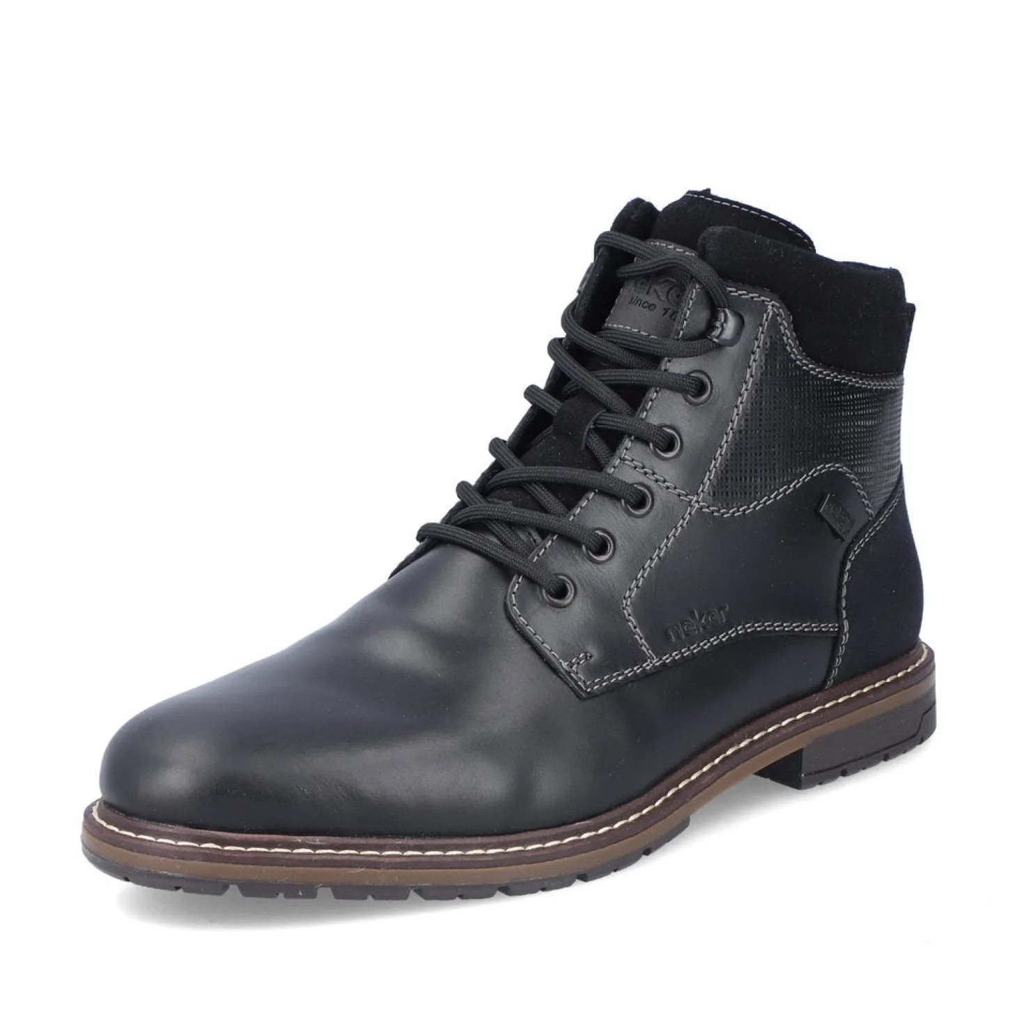 Monikäyttöinen nilkkurimalli vettä hylkivällä RiekerTEX-ominaisuudella. Pinta laadukasta nahkaa, reilu G½-lesti, lämmin villavuori ja tukeva pohja. Vetoketju helpottaa jalkaan laittoa ja nauhat takaavat istuvuuden.
